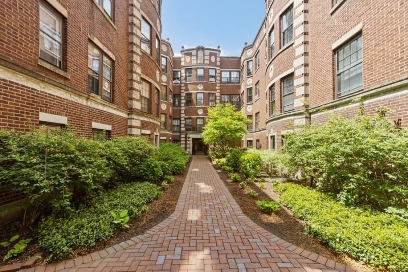 This renovated vintage 1BR/1B condo PLUS large den is quietly nestled into a historic landmark building...St. Francis Courts which offers beautiful space both inside and out. Windows abound in every room in this sunny, airy space along with architectural details throughout: 9' ceilings, crown molding and hardwood floors. Lovely views of the newly landscaped courtyard as well as west views allows natural light to pour into this unit. The completely gut-rehabbed Kitchen and Bath will surely delight with the gorgeous updates and finishes. BONUS-1 car heated garage, electrical updated, storage locker, coin laundry on site. Great location close to parks and transportation. Walk to Lake Michigan. Pet and investor friendly.